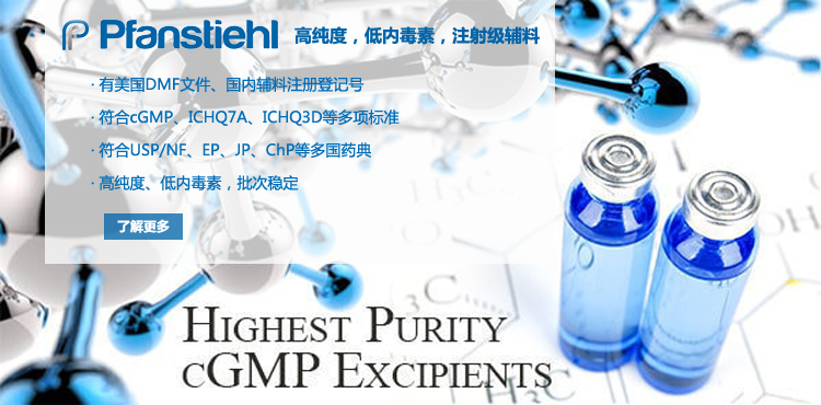 “熱烈祝賀Pfanstiehl的注射級甘氨酸Glycine(G-140)喜獲CDE登記號F20250000403, 這是Pfanstiehl產品獲得的第18個CDE登記號!”甘氨酸在醫藥輔料制劑中應用廣泛,, 可作為緩沖劑,增溶劑,穩定劑等,具有諸多優勢。Pfanstiehl秉承一貫高品質理念,為滿足全球生物制藥行業對于高品質甘氨酸的需求,隆重推出的注射級甘氨酸Glycine (G-140), 具有超高純度,超低內毒素,超低金屬殘留的特點,單獨檢測29種金屬離子,并且新增DNA,RNA,DNA酶,RNA酶和脂肪酶,亞硝酸鹽等多項質量指標的檢測,符合多國藥典規定(USP, EP, BP, JPE, ChP),可用于生物治療性藥物和疫苗的生產。產品信息:· 產品名稱:Glycine, High Purity, Low Endotoxin, Low Metals, USP, EP, BP, JPE, ChP (G-140)· 中文名稱:甘氨酸· 分子式:C2H5NO2· 分子量:75.07 g / mol· CAS號:56-40-6· 產品貨號:G-140產品特點: · 超高純度,超低內毒素,超低微生物含量,超低金屬雜質殘留· 質量指標新增DNA,RNA,DNA酶,RNA酶,脂肪酶和亞硝酸鹽檢測· 符合多國藥典:USP, EP, BP, JPE, ChP· 符合ICH Q3D標準· 符合GMP標準· 已獲DMF和CDE登記號 產品應用:· 緩沖劑· 穩定劑· 增溶劑如果您對Pfanstiehl注射級別Glycine G-140感興趣,歡迎聯系Pfanstiehl 中國區代理商北京西美杰科技有限公司獲得如下詳細的產品概況說明文件和測試樣品。Pfanstiehl Inc.最新產品系列如下,歡迎聯系北京西美杰科技有限公司獲取100g裝免費樣品。北京西美杰科技有限公司為Pfanstiehl中國代理,為客戶提供完善的技術支持與售后服務。歡迎撥打西美杰客服電話400-050-4006或者登陸網站www_xmjsci_com.qdjade.com了解更多信息。 更多>